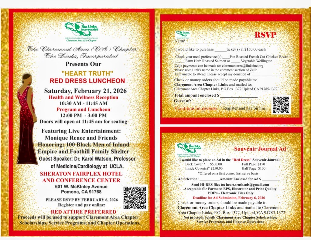 The Claremont Area Chapter of The Links Incorporated Presents the "HEART TRUTH" RED DRESS LUNCHEON