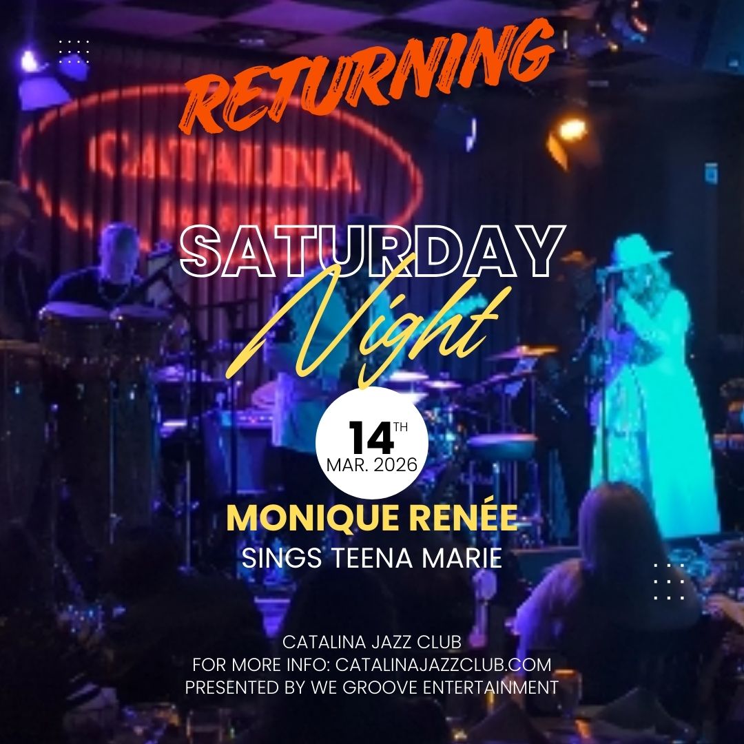 Back to the Hollywood stage! The return of the incredible Monique Renée, her stellar band and the unforgettable Teena Marie Tribute at the Catalina Jazz Club on Saturday, March 14, 2026! Known for her sold-out performances at the Catalina Jazz Club and the Miracle Theater and celebrated for her dynamic appearance at Taste of Soul!